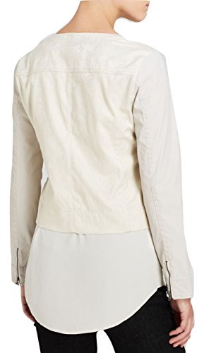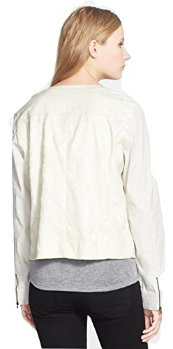 Waxed-twill sleeves offer polished contrast to the textured jacquard body of a collarless front-zip jacket. Exposed zip details add a touch of moto edge. Approximate 22" length. Two-way front-zip closure. Front zip pockets. Zip cuffs. 53% cotton, 44% polyester, 3% spandex with 80% cotton, 18% resins, 2% spandex sleeves. Machine wash cold, tumble dry low. By Eileen Fisher; imported.Feature