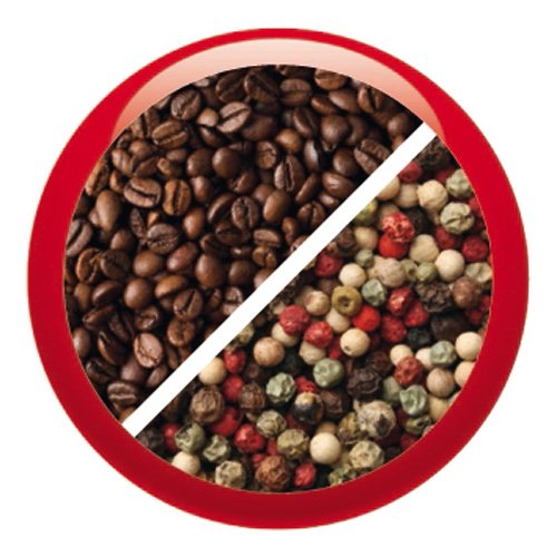 -. Feature : Mahlt Kaffee und Gewürze in nur wenigen Sekunden / Einfache Bedienung nach dem "1-2-3" P.R.Inzip: 3 mal auf den Deckel drücken genügt - fertig! / Zerkleinerungsbehälter aus Edelstahl: Farben, Geschmack oder Gerüche bleiben nicht haften! / 180 Watt