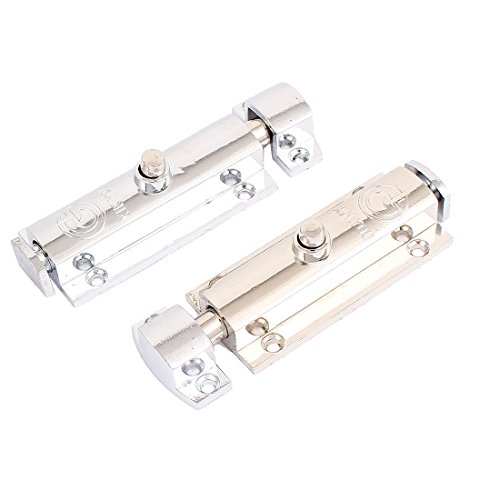 -. Title : uxcell Door 4" Length Sliding Lock Automatic Barrel Bolt Silver Tone 2Pcs
