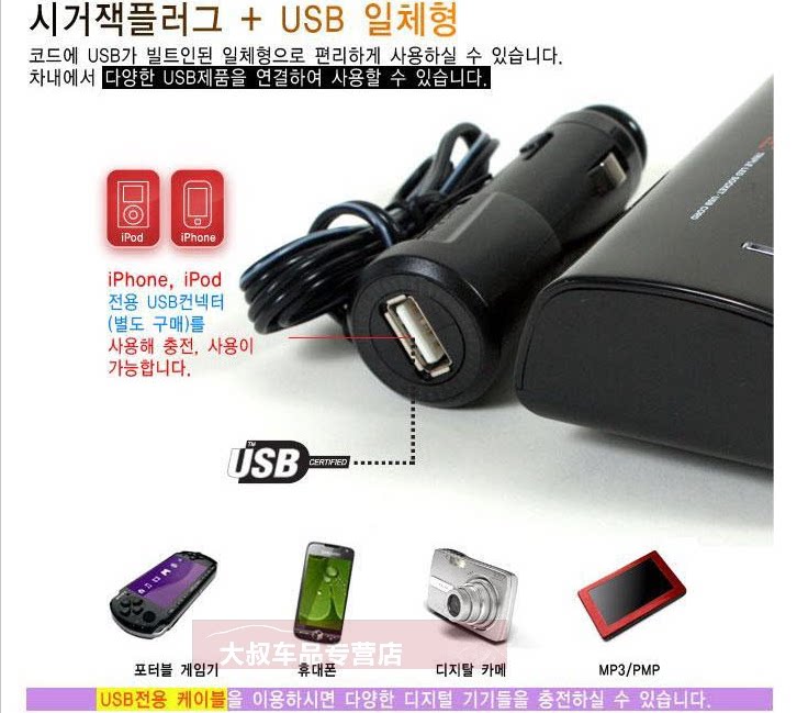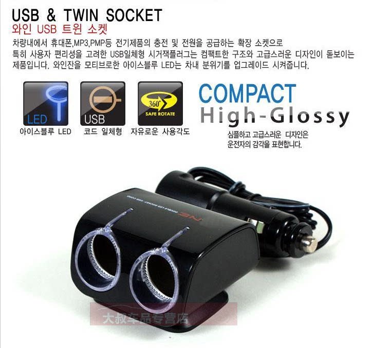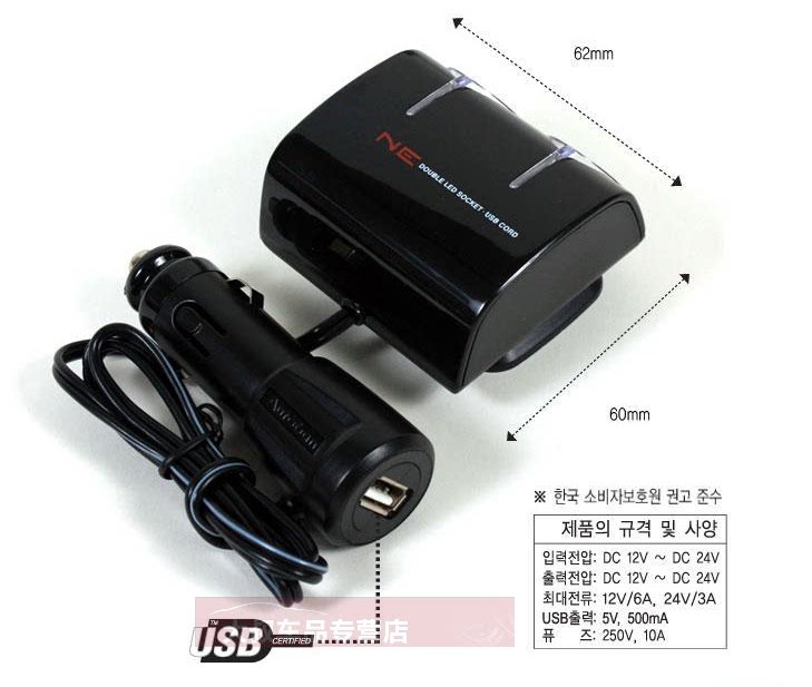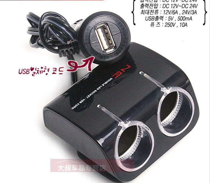 A drag car cigarette lighter splitter one point two two vehicle car charger USB car charger