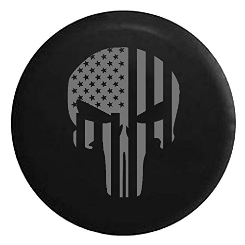 American Flag Tactical Stars & Stripes Punisher Skull Spare Jeep Wrangler Camper SUV Tire Cover Gray Ink 33 in