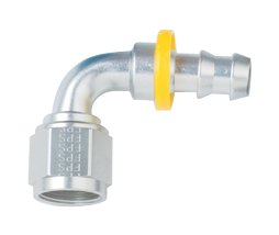Fragola 8000 Series Push-Lite Race Hose Ends Feature: - Unique one piece design that eliminates two brazed joints, which minimizes potential leakage, and improves flow as well as appearance. - The correct A-N specified "J-Thread" for ease of installation and trouble free re-use. - Lightweight polymer cap provides positive stop for hose installation, and covers the cut end of the hose. - Hose barb dimensions per the S.A.E. standards. - All Fragola Push-Lite hose ends are manufactured from aerospace quality aluminum and machined to mil-spec tolerances. - Each fitting is then subject to a bright dip anodizing for a show quality finish. - Tapered nipple provides for easy alignment and installation. 0