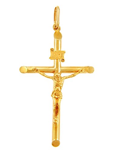 -. Title : Solid 14k Yellow Gold Cross Charm Tubular Crucifix Pendant