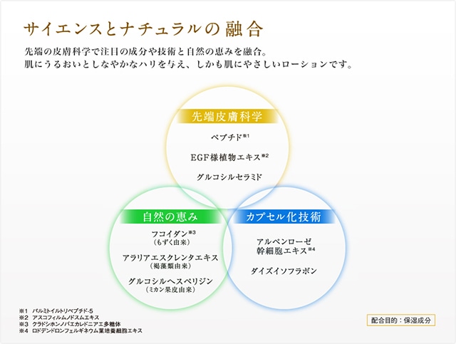 先端の皮膚科学で注目の成分や技術と自然の恵みを融合。