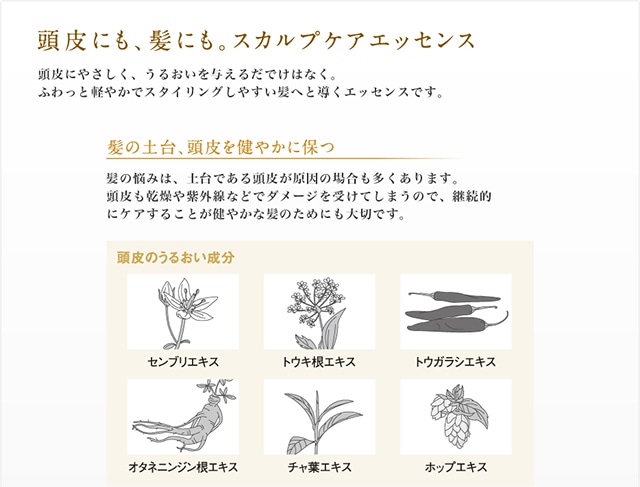 頭皮に刺激とうるおいを与えるスカルプ用エッセンスです。