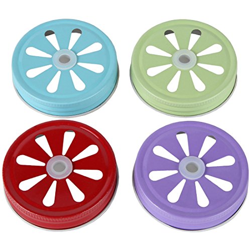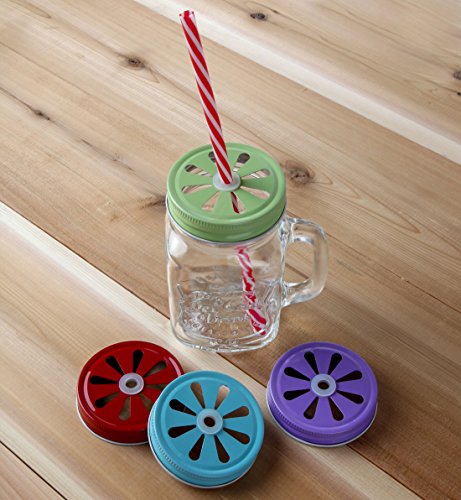 Studio : Lily's Home Publisher : Lily's Home Product Description Our set of 4 decorative daisy cut lids for regular mouth mason jars will add a finishing touch to your jars and convert any regular mouth mason jar to a drinking jar. These mason jar lids are adorable! They are perfect for a birthday party, baby shower, bridal shower, wedding, luncheons, fundraisers more! They are also a fabulous topper for homemade candles in mason jars! Center silicone insert is removable and will hold your straw nicely in place. To use as candle topper please remove the silicone insert. These lids fit most regular sized jelly, pint or quart sized jars. They are approximately 2 3/4" in diameter. They do not fit wide mouth jars. 0
