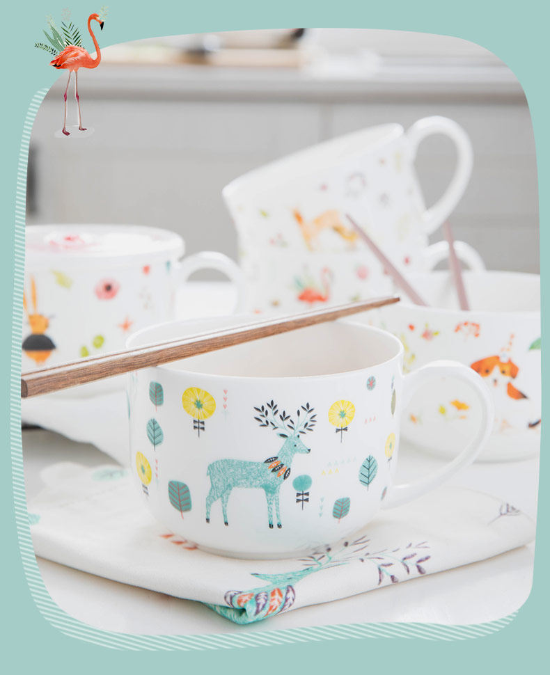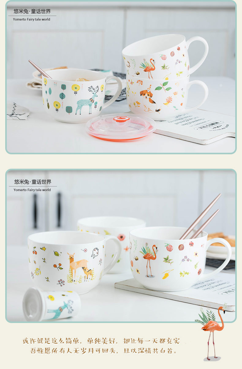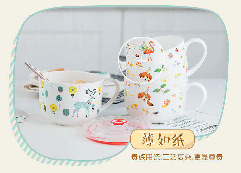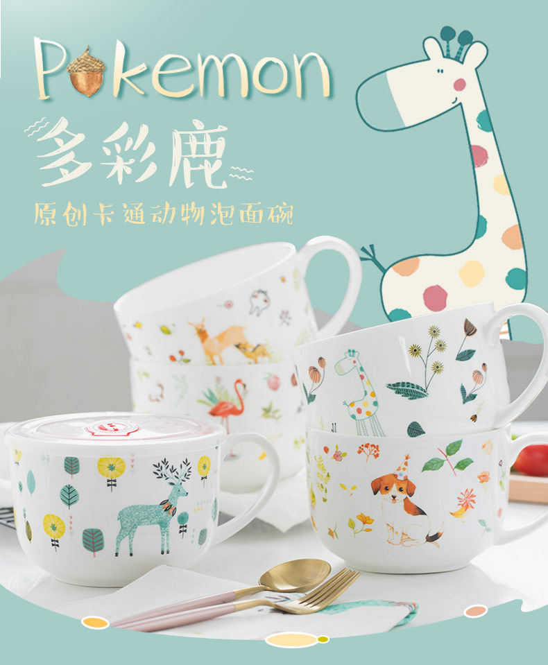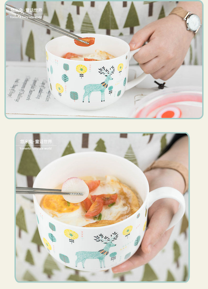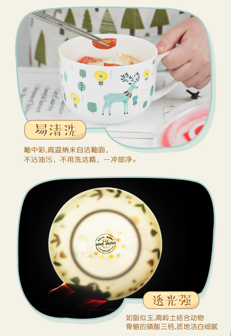 泡面碗陶瓷餐具可爱景德镇卡通大号饭碗甜品碗手柄泡面杯家用面碗