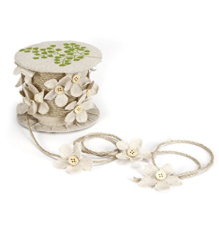 Darice Natural Jute Ribbon with Decorative Button Center Flower Embellishments