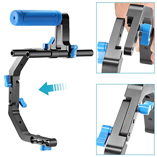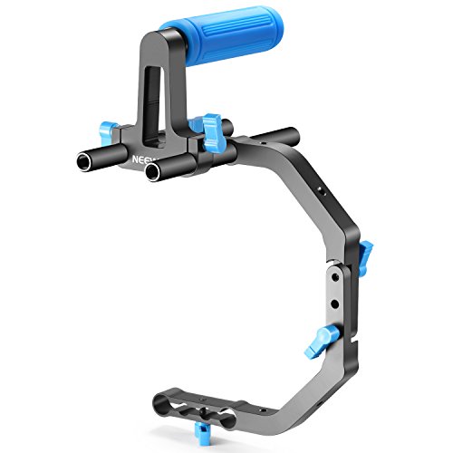 Neewer 15mm C-Shape Support Mount Bracket+Top Rubber Handle Grip for DSLR Camera /DV Support System Shoulder Rig,Can Mount LED light Microphone,for Photography,Videography,Movie Film Making