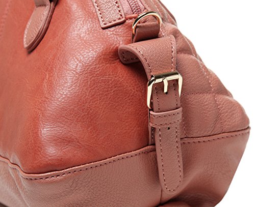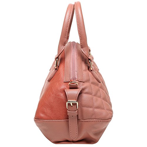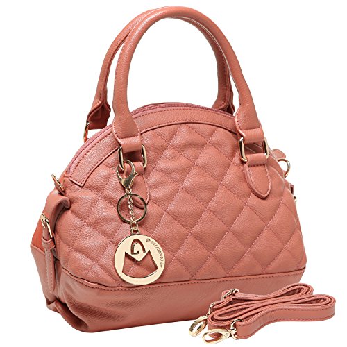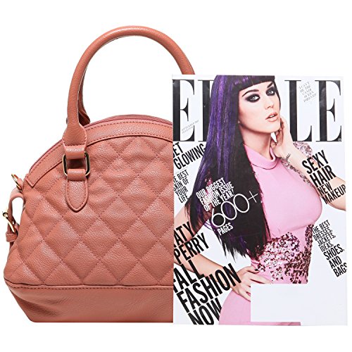 - Title : MG Collection IMANI Pink / Salmon Textured Bowling Bag / Quilted Satchel Purse
