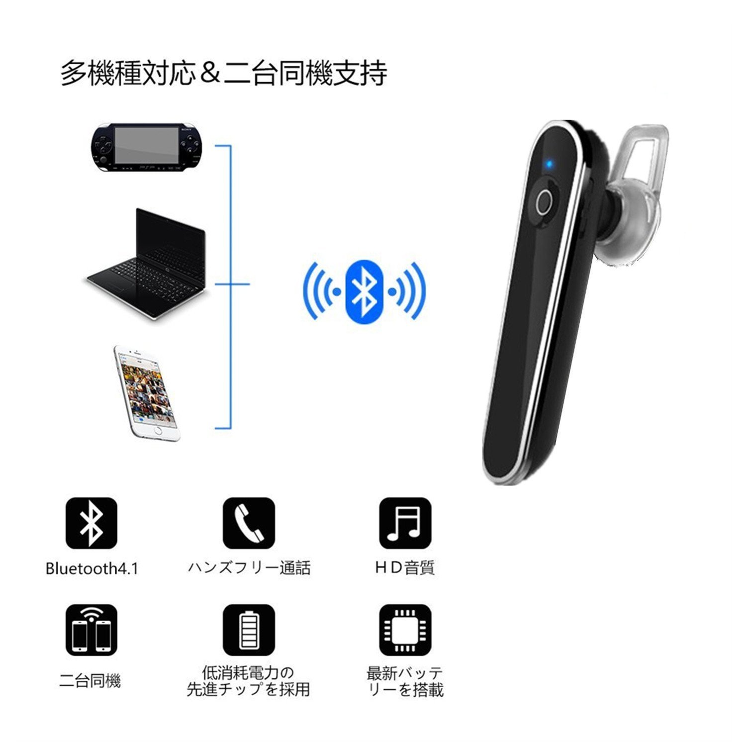 It is compatible with Bluetooth ver. 4.1 and also incorporates CVC 6.0 and DSP noise canceling technology, so you can enjoy high quality wireless call and music viewing with good connectivity.