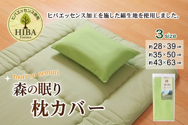 【商品名】枕カバー 洗える ヒバエッセンス使用 『ひばピロケース』 グリーン 約35×50cm