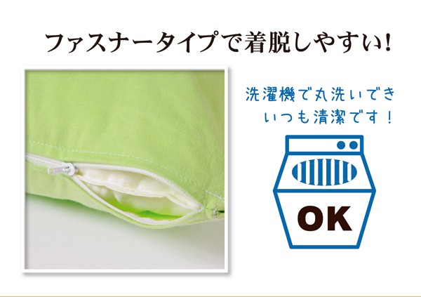 綿素材の枕カバーにヒバエッセンスを加工しました。綿は繊維の中でも特に肌触りが良いのが特徴です。青森県のヒバの木から抽出した「ヒバエッセンス」をメーカー独自の技術で生地に加工しました。ヒバエッセンスにはヒノキチオールという、天然物質としては極めて抗菌性の高い成分が含まれています。(無加工品に比べ、抗菌・防臭効果があります。)ヒバエッセンスで安らかな森の眠りをご提案します。本商品はファスナータイプですのでだ脱着も簡単です。ご家庭の洗濯機で洗えますので、清潔にご使用頂けます。