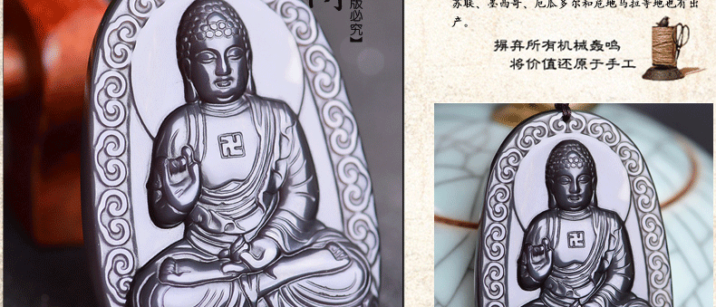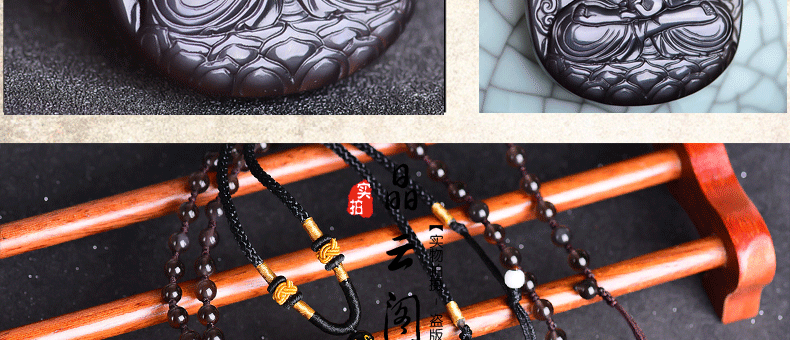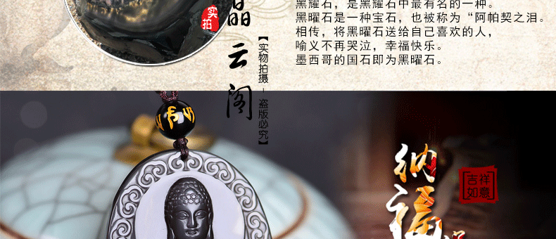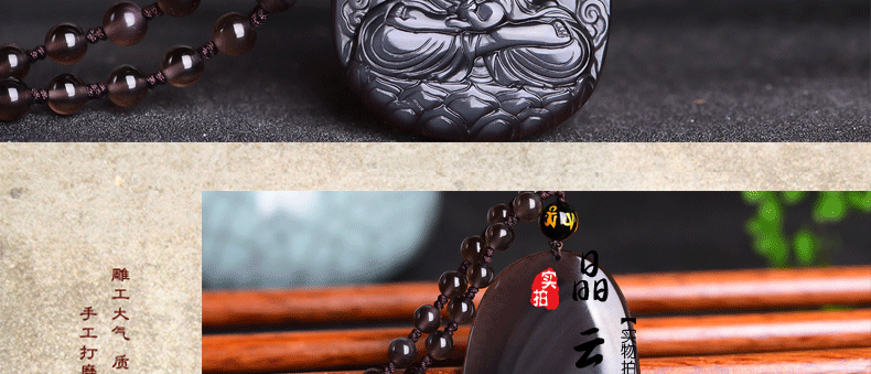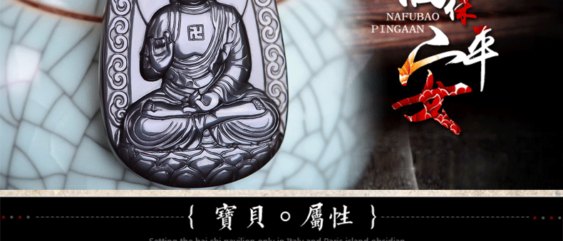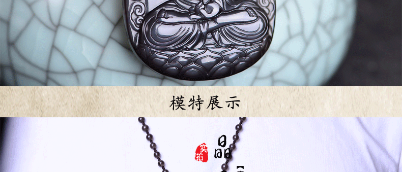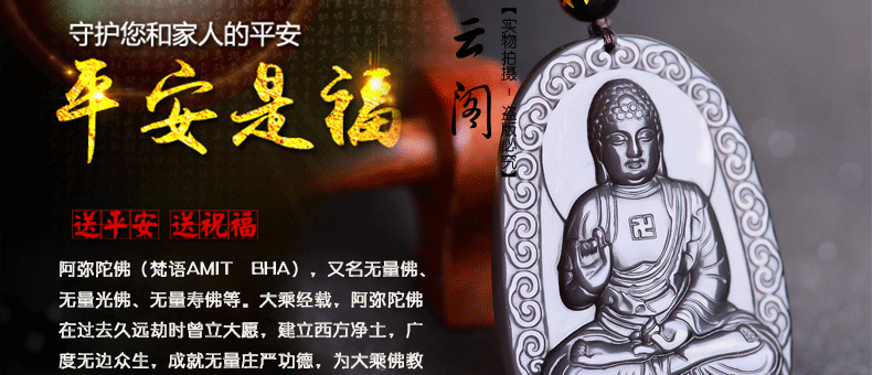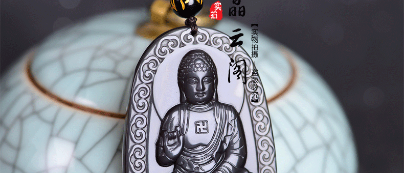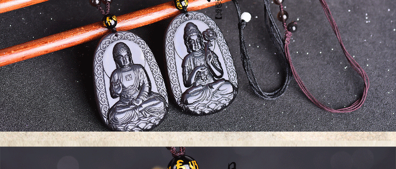 开光 天然冰彩黑曜石阿弥陀佛菩萨吊坠 生肖狗猪守护神本命佛项链