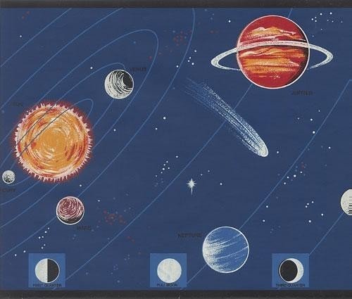 -. Title : Wallpaper Border Outer Space Planets Stars on Blue Sky with Black Trim