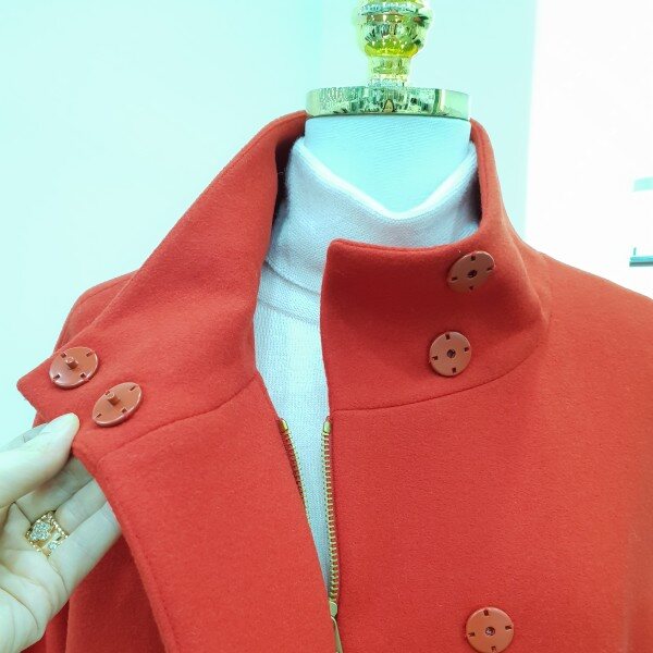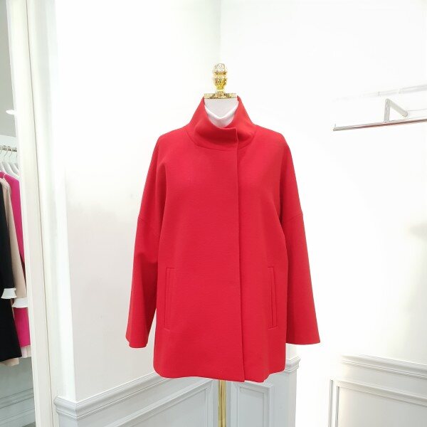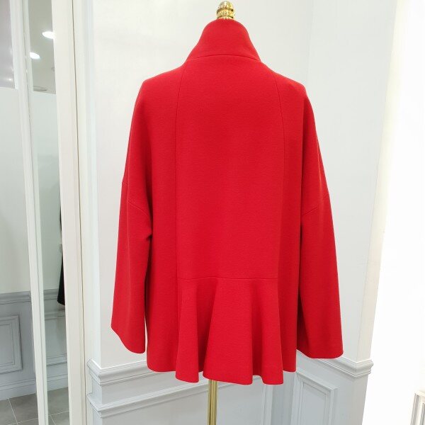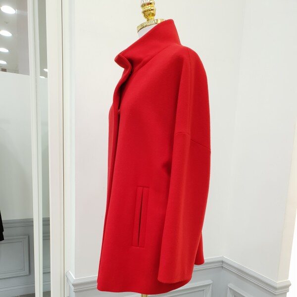 힙기장의하프코트입니다~♡앞은 심플하게 뒷쪽은하단홀처리로 여성스런라인으로 처리되었습니다 살짝루즈핏으로전체적으로 여유롭습니다~다홍빛레드 색감이 참예쁘네용♡♡총장70Cm