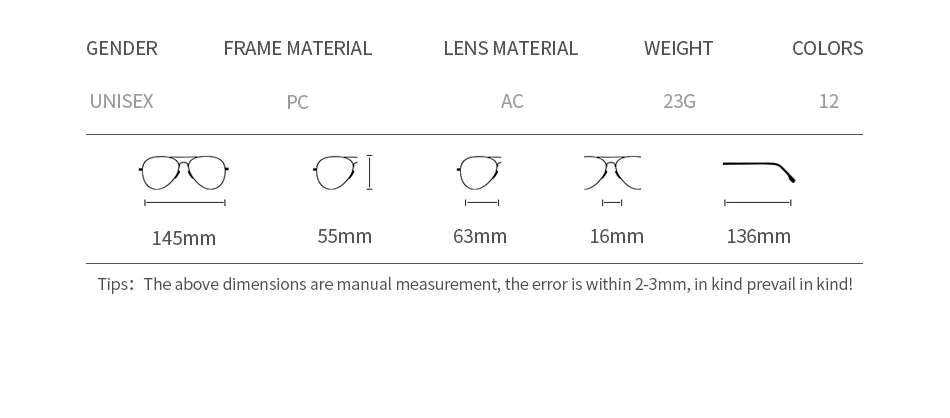 Lenses Material:Acrylic