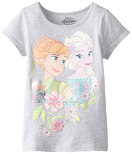 Disney Little Girls' Elsa and Anna Sisters Graphic T-Shirt, Heather Gray, 6