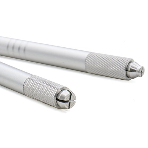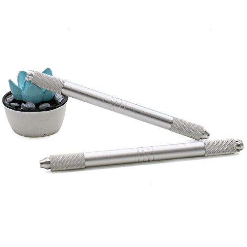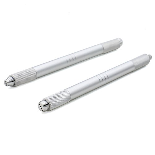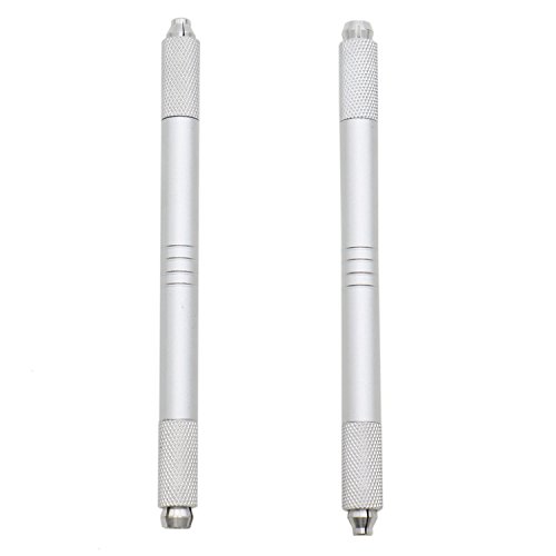 Pack of 2 Dual-head Permanent Eyebrow Tattoo Pen Manual Handheld Tattooing Pencil Tool ,Silver
