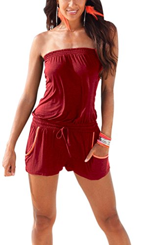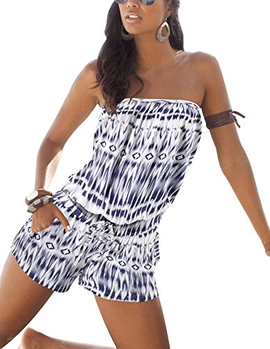 | Sumtory Women's Strapless Printed Beach Short rompers jumpsuits |