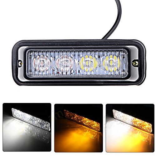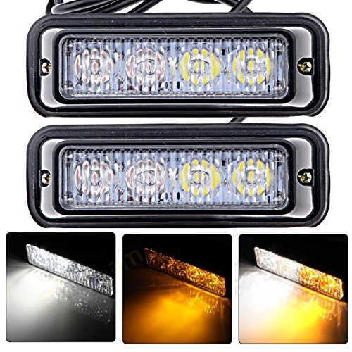 Astra Depot 2X Amber & White 4-LED Emergency Strobe Light Head Waterproof Surface Mount Deck Dash Grille