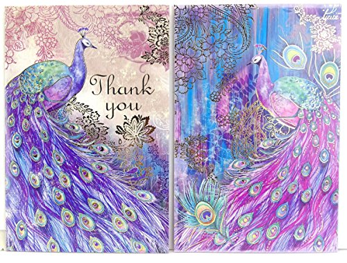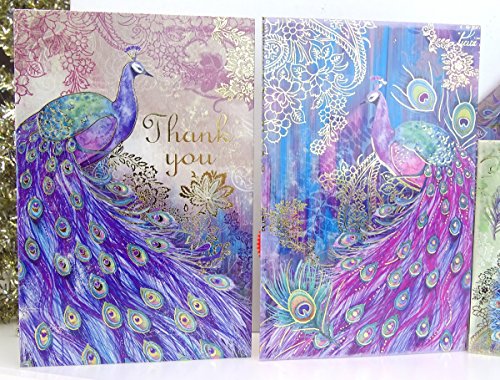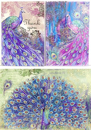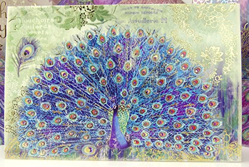 (Punch Studio)/Stationery Party Supplies/Stationery/DIRECT FROM USA/#97652 Punch Studio Note Card Set (12) Magical Peacock Trio in Vinyl Pouch Thank You
