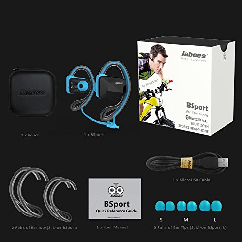 Get rid of the wires when exercising! Jabees BSport Bluetooth sports headphone can handle your rigorous workouts with its sweat, dust and shock resistance. Better sound makes better performance. With aptX delivers 16bit and 44.1kHz CD-quality music over Bluetooth wirelessly, and 10mm ultra large neodymium dynamic speaker construct superb smooth bass resonate. The refined engineering design with removable safe-hook of the in-ear headphone allows you to focus on your workout, never worry of fall-out and create ultimate comfortable user experience. The dual microphones deliver superb wind reduction and crystal clear calls. So go ahead, move, sweat and rock hard.