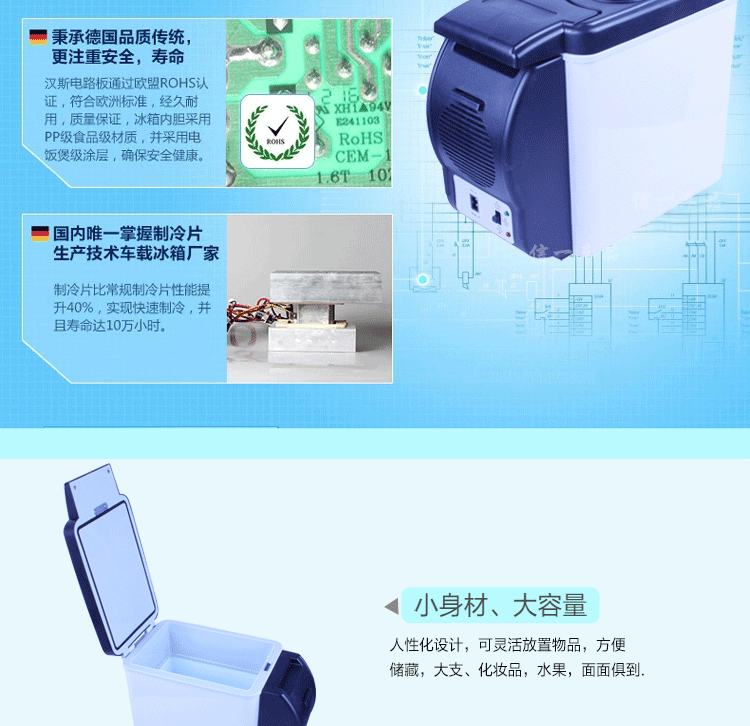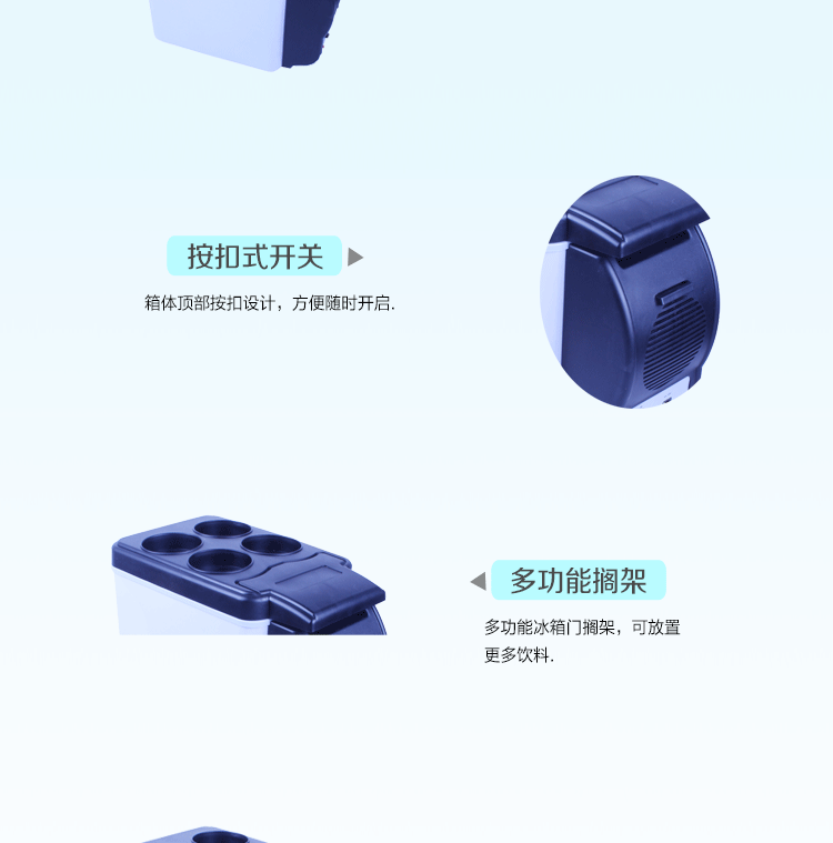u0026nbsp;u0026nbsp; 汽车小冰箱由于重量轻,便于携带,它优美的外观和设计、齐全的功能,将会带给你舒适感,特别是在你辛苦工作后,享受冷饮时,会减少你一天的疲劳。