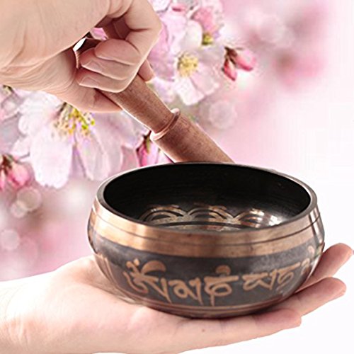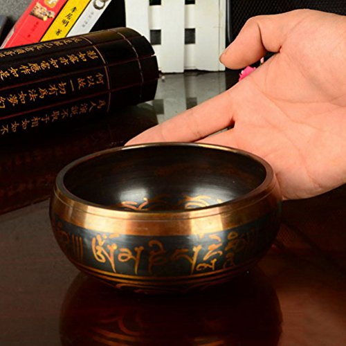 Package Including 1 * Tibetan Yoga Meditation Om Mani Singing Bowl with Mallet (Brass Color) 0