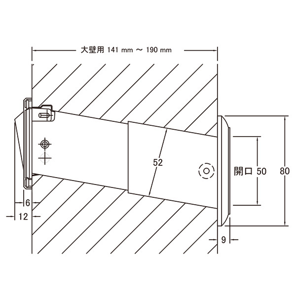 ●スペック:受口部:幅(mm)260 高さ(mm)66 取出し口開口寸法:幅(mm)202 高さ(mm)50  壁厚調整範囲141~190mm
