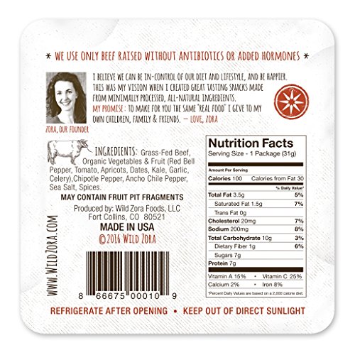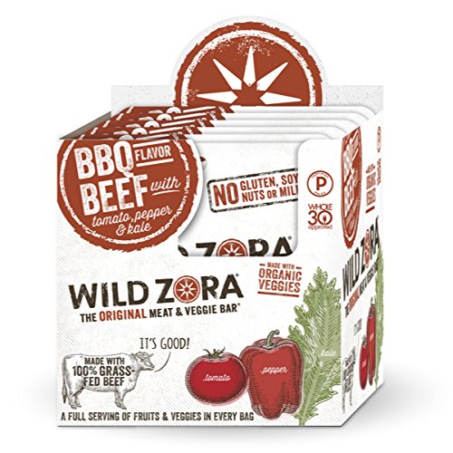 Wild Zora BBQ 100% Grass Fed Beef & Organic Veggie Bars (10 pack) - Gluten-Free, No Antibiotics, No Added Hormones