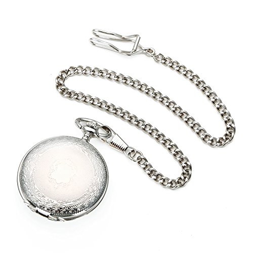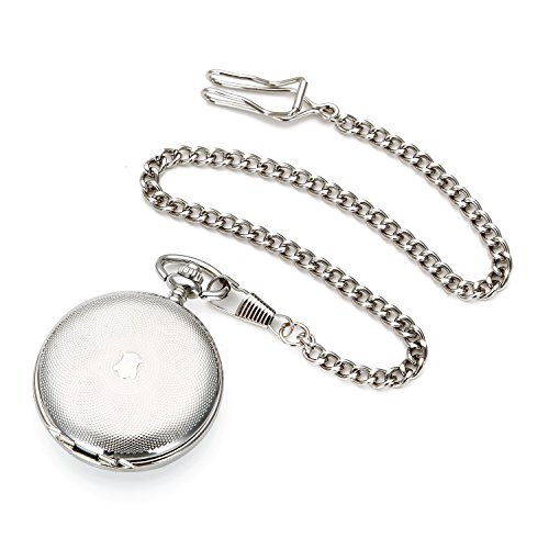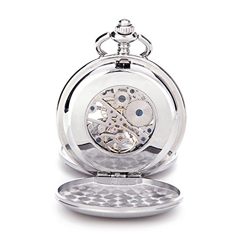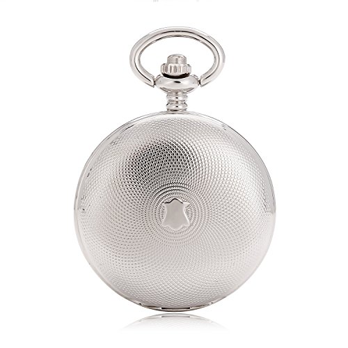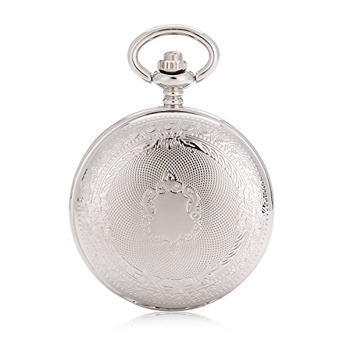-. Title : SHUHANG Silver Double Hunter Roman Number Dial Wind Up Mens Mechanical Pocket Watch Steampunk Watch w/Chain
