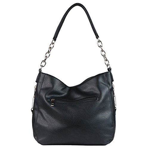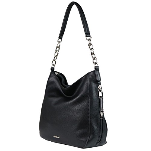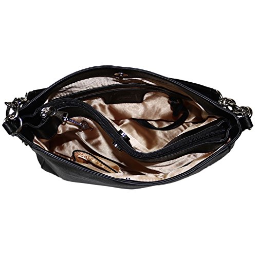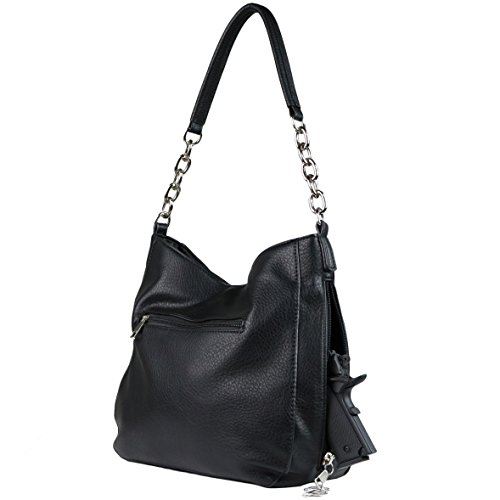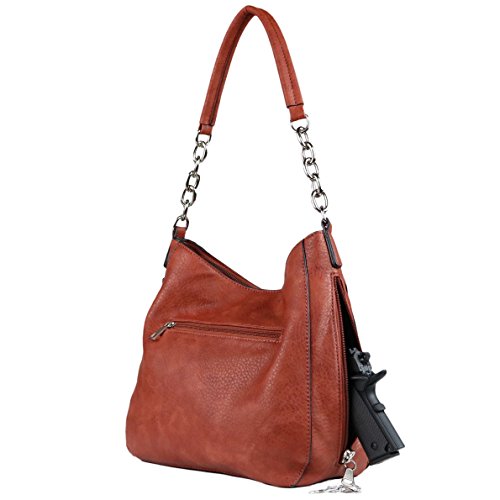 -. Brand : Lady Conceal -. Department : womens -. Feature : PREMIUM DISTRESSED FAUX LEATHER - Supple distressed faux leather / versatile carrying options - round handle or optional cross-body adjustable strap measures 28"- 50" (drop 14" - 25") / quality silver-tone hardware / TWO SPACIOUS INTERIORS - Fully lined satin interior with magnetic closures / front compartment - 2 open slip pockets / back compartment - zippered P.R.Ivacy pocket and swivel clip for keys on leather strap / YKK LOCKING CONCEALMENT - Three entry concealment pocket (sides and top) / key-locking YKK zippers with 6 keys / includes universal holster with Velcro for a secure fit / concealment pocket measures 11" W x 7" H (top entry measures 10") / 100% SATISFACTION GUARANTEED - If for ANY reason you are not completely satisfied, we will refund 100% within 30 days. No questions asked. / IDEAL SIZE - Not, too large, not to small 12" W x 10" H x 4.5" D -. ProductGroup : Shoes -. ProductTypeName : HANDBAG -. Size : Medium -. Title : Concealed Carry Purse - YKK Locking Ashley Chain Concealed Carry Gun Hobo by Lady Conceal