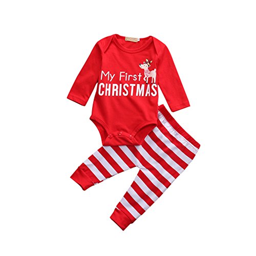 -. Feature : 【Material】:Made of high quality fabric, lightweight, soft and comfortable / 【Style】: "My first Christmas" Letter P.R.Int;cute and fashion, make your baby girls looks lovely and cute. / 【Occasion】: Daily Wearing, special outfit for Christmas and New year / 【2 pieces clothes set】long sleeve romper + striped leggings 2pcs set, fits SP.R.Ing, Autumn, Winter, / 【Baby fits】4 Sizes to choose fits 0-18 mothes baby boy baby Girls .