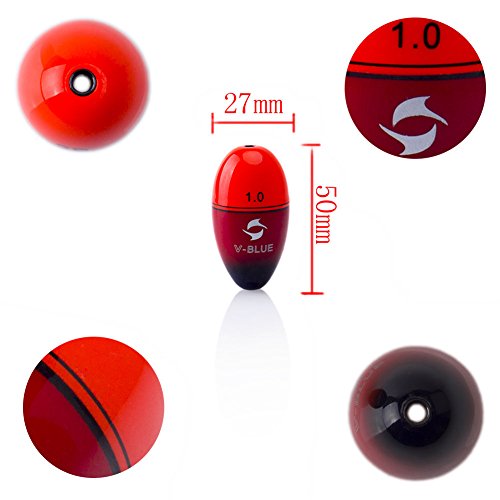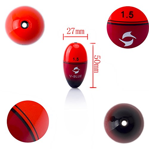 -. Feature : Material:Paulownia and UV Paint / Hole diameter:2.8mm / Great for small Size hook baits, maggots, crickets, salmon eggs, up to spawn sacks, and small minnows / This bobbers has good buoyancy and it can float on the top of the water / Package Content: 5 x Fishing Bobber