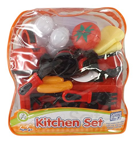 - Feature : Miniature Portable Stove Top with all the tools and utensils you need! / Includes kitchen tools, utensils, cups, dishes, mugs, pots, pans, and more! / Breakfast style playfood include eggs, sausages, bread, lettuce, tomatoes, etc. / Stove measures 9" in Length / Comes with Clear Tote Bag for Easy Storage