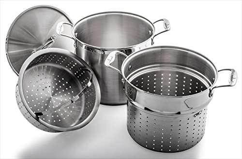 Studio : Culina Publisher : Culina Binding : Kitchen Product Description From grains to pasta, leafy greens or root vegetables and all kinds of meat, cooking needs are as varied as the diversity of food itself. Looking for a reliable cookware to cover such a wide variety of recipes, preserve nutritional value and enhance taste? Look no more! Culina 12 Qt. Multipurpose Stainless Steel Pot has got you covered! Anything from boiling, steaming, slow-cooking, draining or multitasking in the kitchen is from now on all fun and games! Sturdy, durable, solid construction for great performance in the kitchen! Culina 12 Qt. Multipurpose Cooker is an alliance of traditional and innovative properties. Rust-resistant, stainless steel material with aluminum base to distribute heat evenly. It comes with 4 parts: 1 pot, 1 lid and 2 inserts (a strainer and a steamer.) The tight fitting lid, the pot and strainer are outfitted with die-cast handles and knob for a solid, sturdy and cooling grip. Such innovative construction offers durability and great performance with little to no warping over time. A satin/mirror band finish nicely rounds up the sleek, stylish design. Versatile and easy to use: simplify your life Boil: Heat spreads evenly for a uniform texture and enhanced taste. Also great for blanching, a method known to effectively stop the cooking process of a boiled produce to retain nutrients and obtain a superb color effect. Steam: A two-decker insert system provides multitasking at its best. Drain: Incorporated in the process, no transfer needed, no more burning yourself or splattering boiled liquid around. Slow-cooking: Ideal for stocks including meat or poultry ingredients flavorfully infusing the rest of the sauce, Excellent housewarming or wedding gift idea!. 0