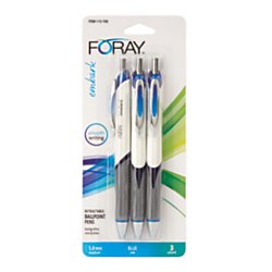 -. Title : FORAY(R) Embark Retractable Ballpoint Pens, Medium Point, 1.0 mm, Gray/White Barrel, Blue Ink, Pack Of 3