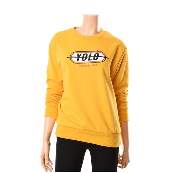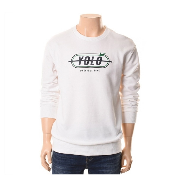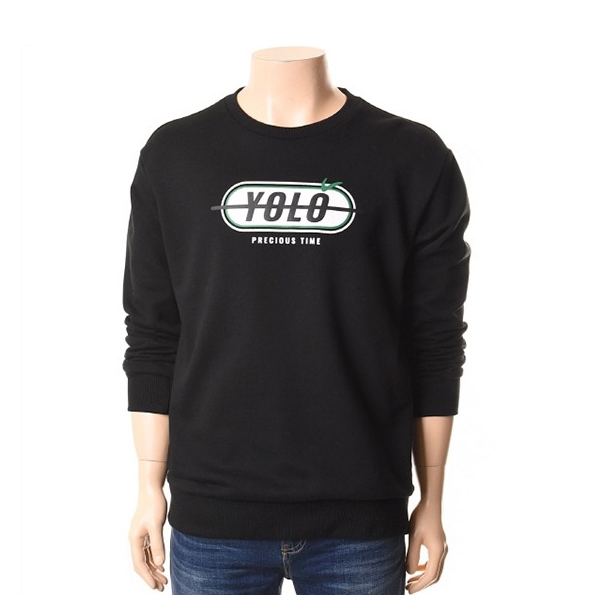 남녀공용의 욜로로고 맨투맨 티셔츠 입니다