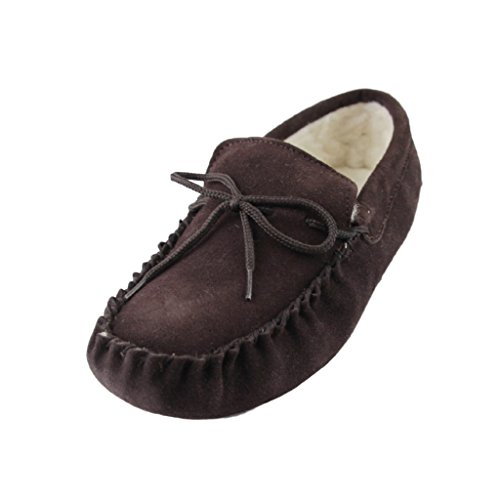 Product Description Genuine Ladies Suede Moccasins with warm lining made from Sheepskin Wool. Soft Suede sole, perfect slippers for keeping your feet warm this season. 0