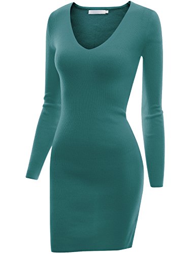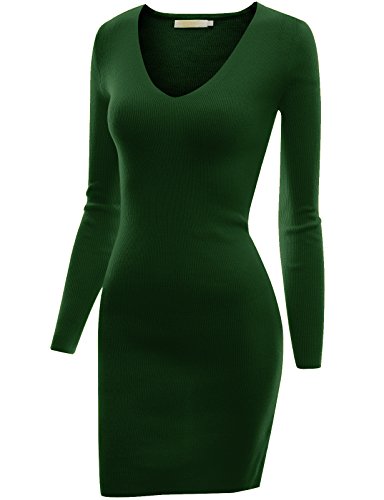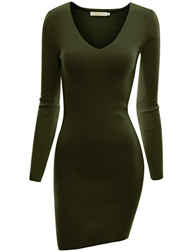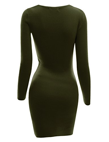 Doublju Women 3/4 Sleeve Back Lace Soft Fabric OLIVE Dress,M