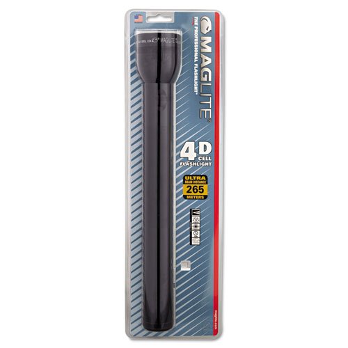 Amazon.com Product Description Bright lights, burly cases, fail-safe on/off switches, virtual indestructibility: there are good reasons to rave about Mag Instrument flashlights. Powered by 4 D-cell batteries, the bright, powerful light adjusts from spot to flood simply by rotating the head. The light is housed in a case made of high-strength aluminum alloy that has been anodized inside and out. This, along with high-quality O-rings at both openings, give you water- and shock-resistance in a lightweight package. Maglite's switches are rubber-coated, weather-protected, and self-cleaning-they're virtually indestructible. In short, this flashlight is almost indestructible-a good quality when it comes to the tools re rely on to help you find your way in the dark. Limited lifetime warranty. Requires 4 D-cell batteries (not included). Includes spare bulb (stored in the end-cap). If you don't think you'll need the extra run time the 4 D-cells give you, see Mag Instrument products #S2D016 and #S3D016.--Josh Dettweiler What's in the Box Flashlight, spare bulb 0