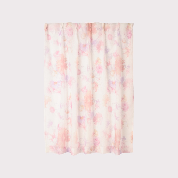수채 터치의 꽃무늬를 얹은 페미닌한 레이스 커튼입니다.