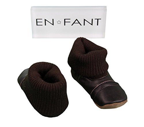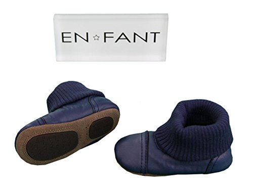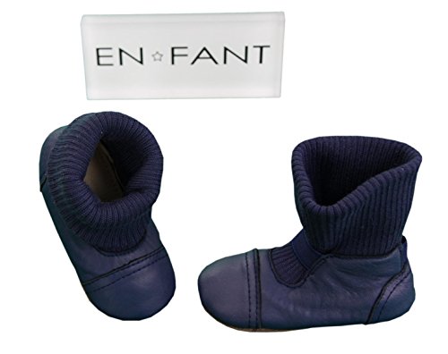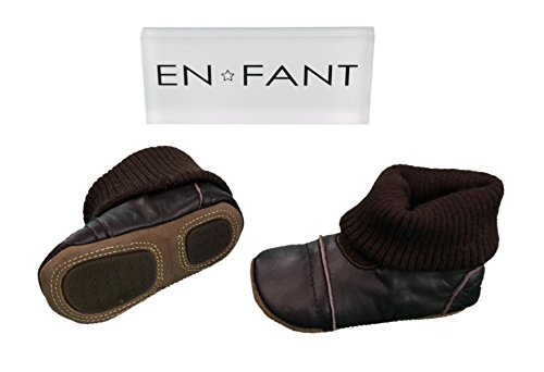 -. Feature : Schöne Echtleder Lauflernschuhe für kleine Mädchen und Jungen, Kinderschuhe in dezenten schwarz / Der elastische und umschlagbare Strickbund sorgt für perfekten Halt und für warme Füsse. Die Gummizüge an der Ferse und vorne erleichtern das An- und Ausziehen und geben zusätzliche Stabilität / Das hochwertige verarbeitete Leder ist butterweich und passt sich perfekt dem Baby- und Kinderfuß an, so eignen sich die Leder Schuhe auch perfekt zum Laufen lernen. Die witzige Logoprägung auf der Laufsohle ist ein stylischer Hingucker und das angerauhte Leder drumherum sorgt für Rutschfestigkeit / Hochwertige EnFant Qualität in bester Verarbeitung, komplett schadstofffreies Lammleder innen und außen, Laufsohle aus TPR und Echtleder