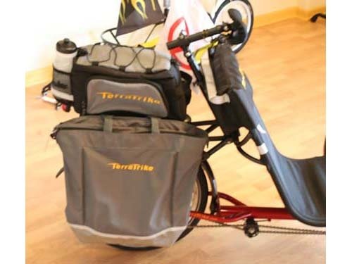 Studio : TerraTrike Publisher : TerraTrike Product Description These great bags are the perfect size to fut a full bag of groceries in. Their quick release and insulated inside are designed to quickly be detached and taken right into the store. It then attaches directly to your rear rack (not included). Comes with adjustable carrying strap. These panniers fit our TerraTrikes well and attach easily to our rear rack. They can be used in conjunction with the seat bag and the trunk bag. Compatible with all trikes we currently sell. Not compatible with TerraTrike versions 1.9 and older. Rear rack is also required. 0