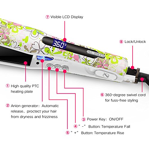 The only official Natalie Styx Brand Store on Amazon. Natalie Styx, as a professional hair care & beauty care brand, stands for a nature and high end personal hair care branded from Hong Kong since 2005. Once you get in touch with Natalie Styx Hair Care Products, any time you would enjoy your hair caring. Features One button easy operate and high efficient performance A simple turn on/off button control, with the 1.5 inch plates premium PTC ceramic heating components, the flat iron only take a minute to achieve preset temperature, professional to straighten you styling hair.