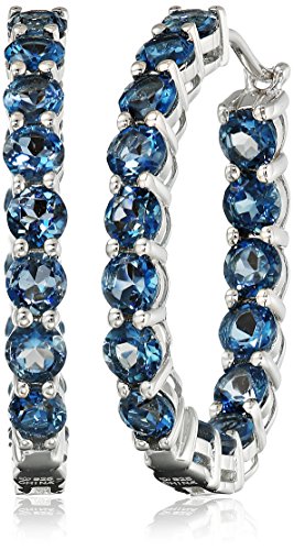 Elegant and beautiful, these 9cttw inside-out oval hoop earrings features 32 prong-set 4mm Blue Topaz stones.