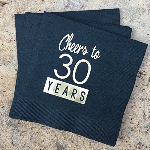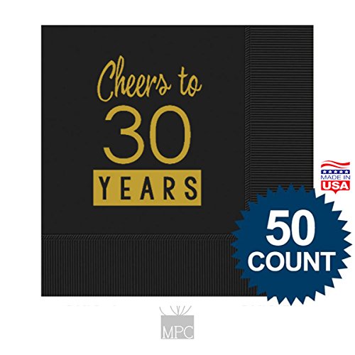 30th Birthday Black Cocktail Napkins - Cheers to 30 Years (50 napkins)