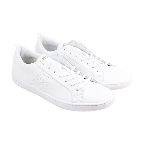 Lace-up skateboard shoe featuring logo at tongue and perforated side panel