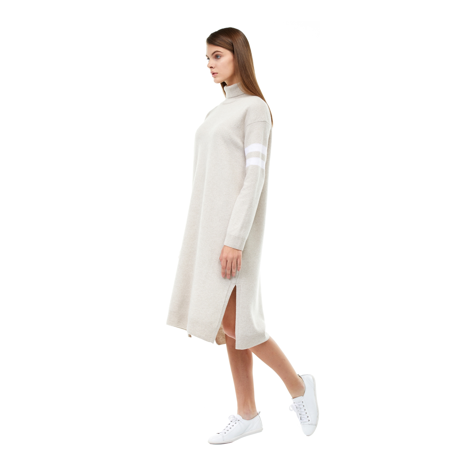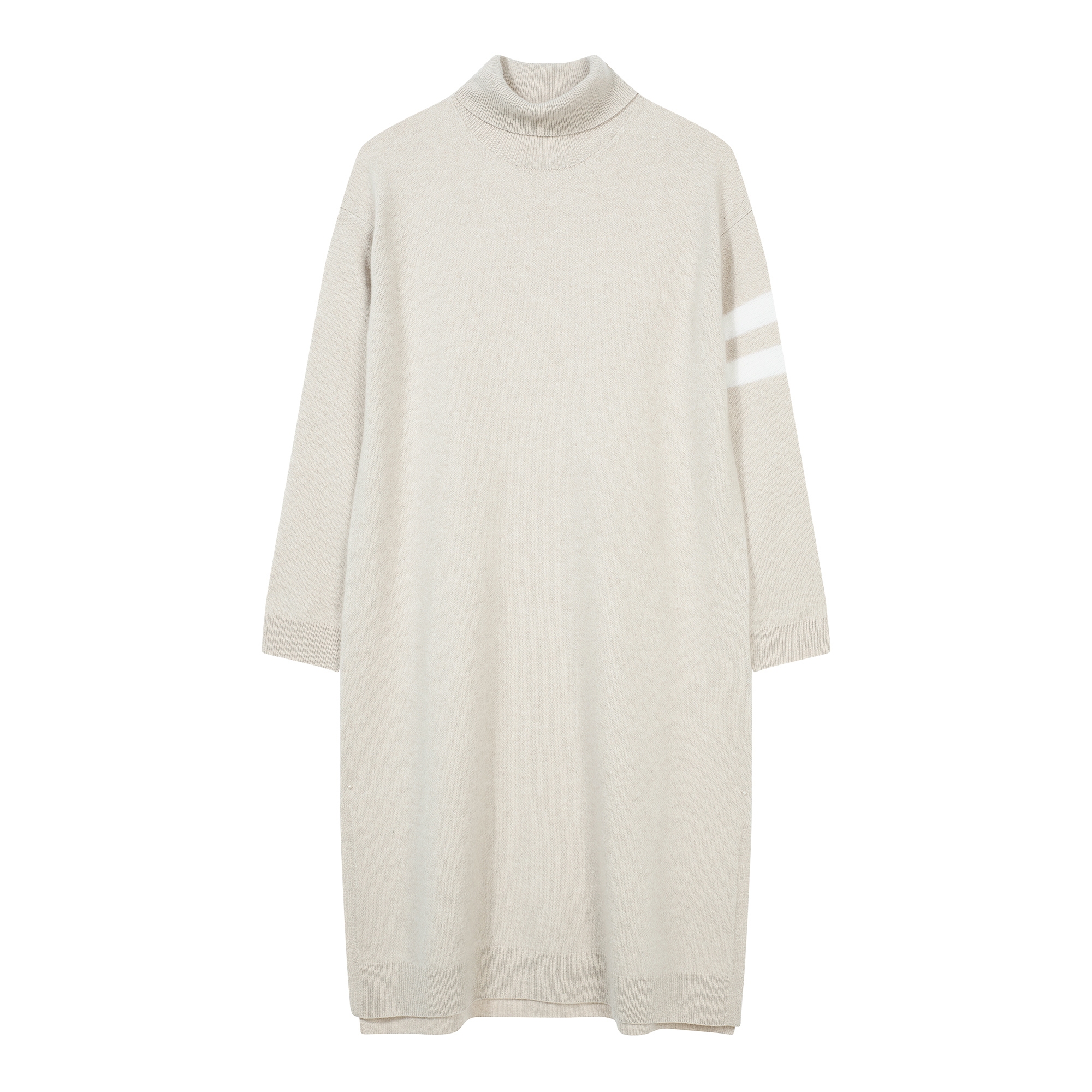 컬렉션 : 2017 Fall/Winter 디자인 포인트 : - 캐시미어 혼방 소재로 부드러운 터치감을 자랑하는 니트 원피스- 목을 감싸주는 터틀넥 디테일로 보오성을 띄는 디자인- 왼쪽 슬리브에 배색 디테일로 포인트를 더한 아이템 스타일링 추천 : 단독으로 미니멀한 액세서리와 스니커즈를 매치하여 캐주얼한 스타일링을 연출 할 수 있음